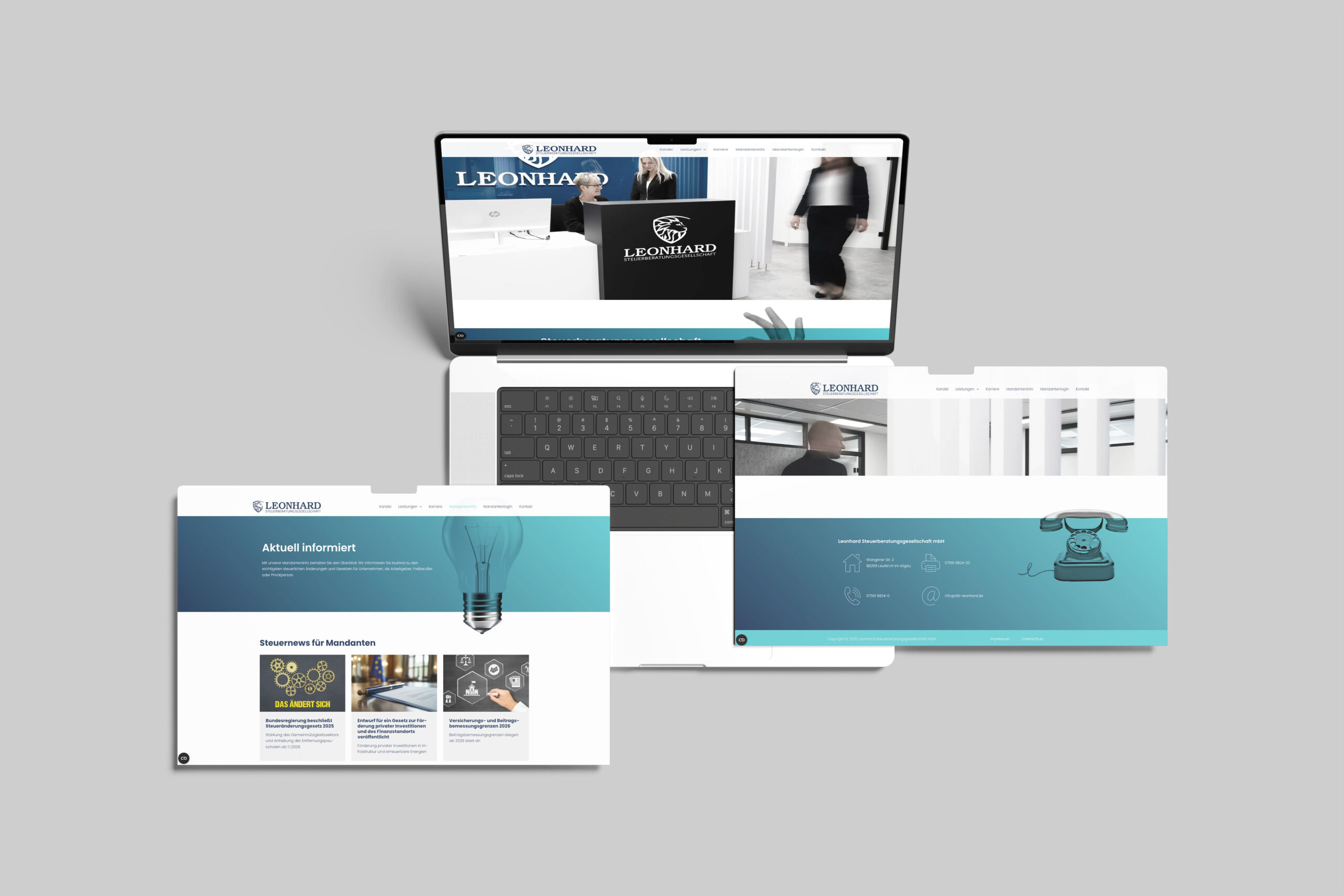 Der Online-Auftritt von Steuerberater Leonhard war funktional, aber viel zu leise: solide, klassisch, textlastig – und weit entfernt von der modernen, mutigen und digitalen Beratung, die die Kanzlei wirklich verkörpert. Das Klischee „graue Steuerwelt“ musste dringend gebrochen werden.