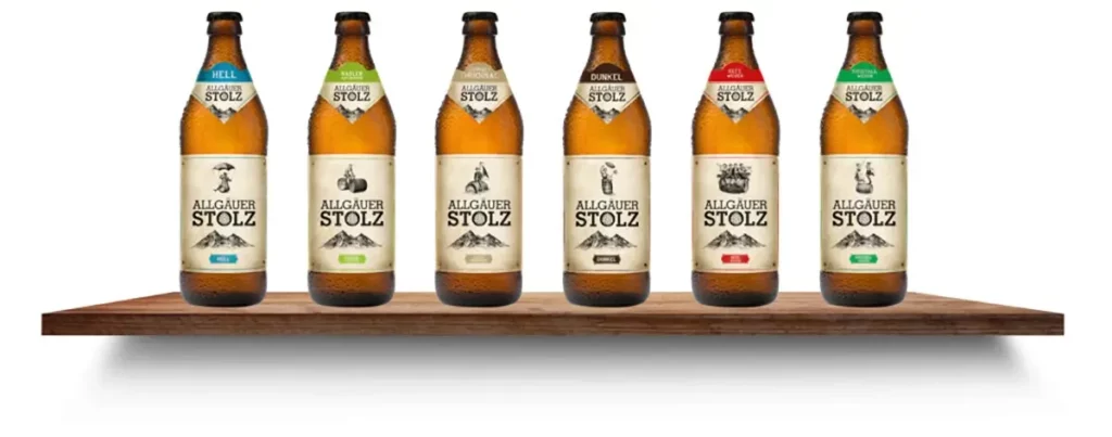 Nichts liegt näher als das Bier nach seiner Herkunft zu benennen: Familienbrauerei Stolz aus Isny im Allgäu, kurzum Allgäuer Stolz. Eindeutig zweideutig als klare Herkunftsbezeichnung.