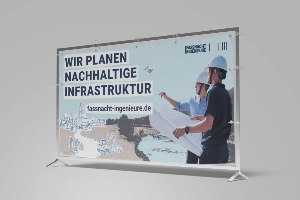 Für das Ingenieurbüro Fassnacht aus Bad Wurzach haben wir eine Recruiting-Kampagne entwickelt, die auf Bauzaunbannern ihre Wirkung nicht verfehlt. Andere wirkungsvolle Werbemittel, wie beispielsweise eine Imagebroschüre, wurden ebenfalls von uns umgesetzt.