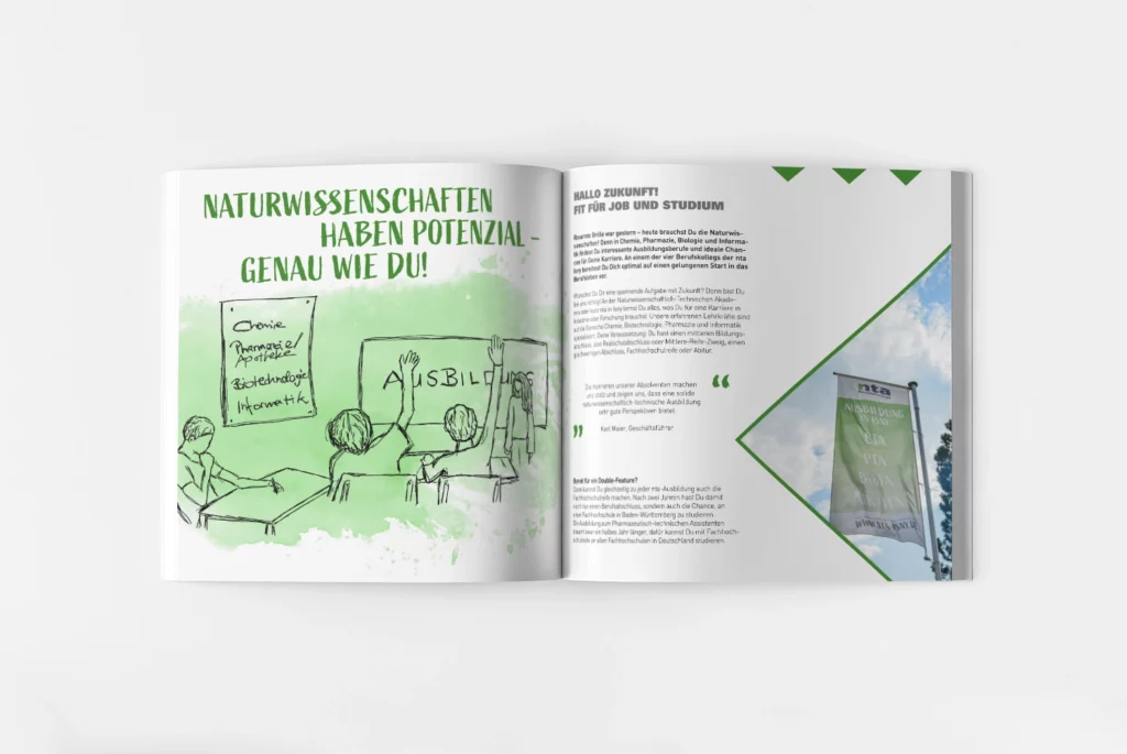 Für die Naturwissenschaftliche Akademie Isny führten wir ein Redesign durch. Neues Logo inkl. neuen Gestaltungselementen, Farben, Schriften – mit allem Drum und Dran.