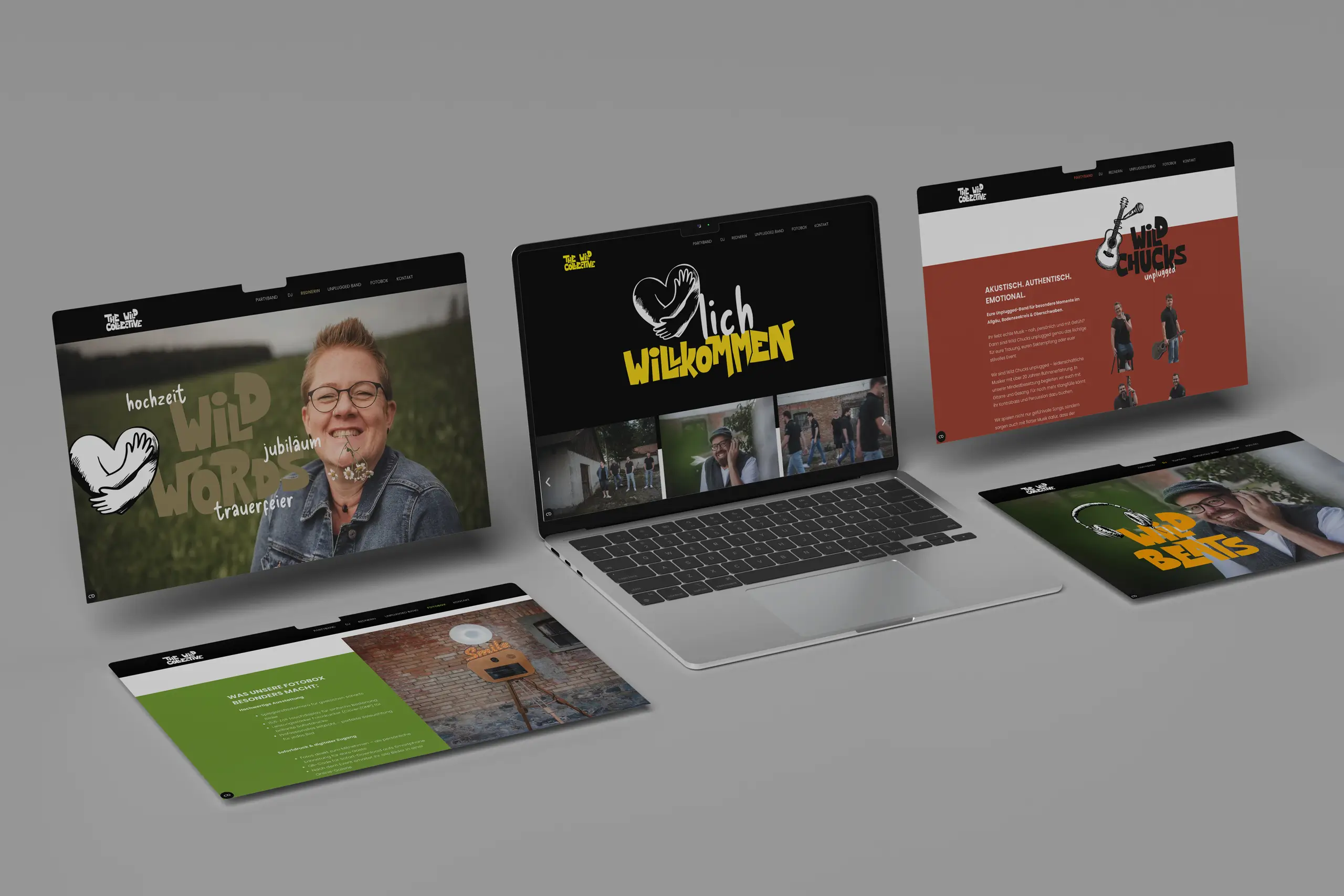 Die Wild Chucks haben uns vor die Herausforderung gestellt, ihre verschiedenen Talente – Band, DJ, Trauredner und Solo-Künstler – so zu bündeln, dass für Außenstehende sofort verständlich wird, wie alles zusammenhängt und welches Gesamtangebot dahintersteckt.
